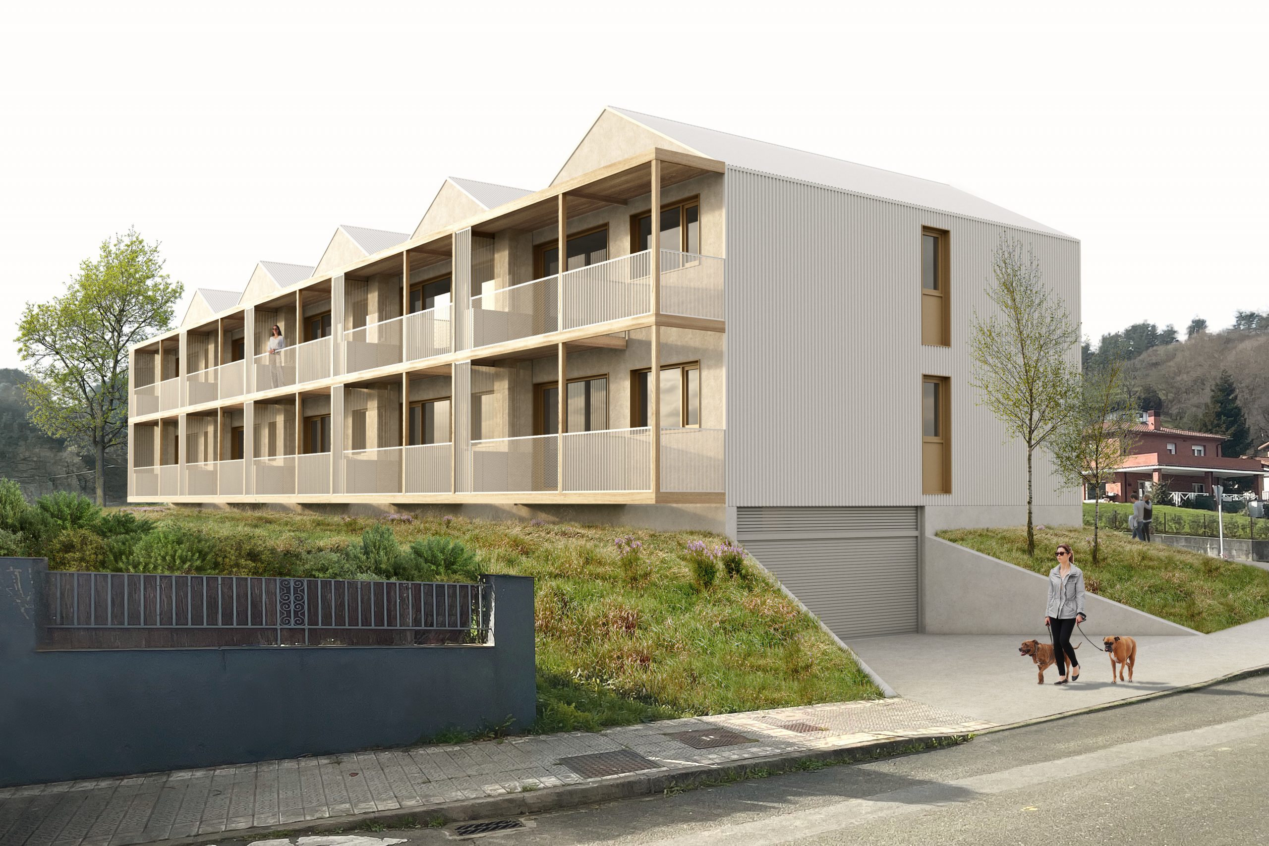 El proyecto para la construcción de 10 alojamientos dotacionales en Arrankudiaga-Zollo se concibe como una intervención de escala doméstica, integrada en el tejido urbano y en la topografía del barrio de Elexalde, y pensada específicamente para responder a las condiciones de la vivienda pública en régimen de alquiler.