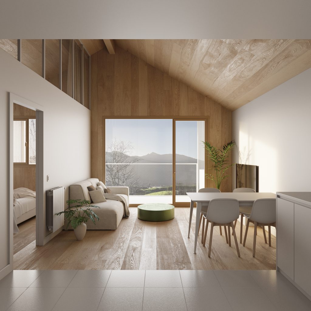 Desde el punto de vista constructivo y ambiental, el proyecto apuesta por un sistema estructural mixto con madera contralaminada (CLT) y soluciones industrializadas en seco, priorizando la eficiencia energética, la reducción de la huella ambiental y la optimización de los procesos constructivos. La envolvente de altas prestaciones y los sistemas energéticos individuales permiten un edificio de bajo consumo, sencillo de gestionar y adaptado al uso cotidiano.
